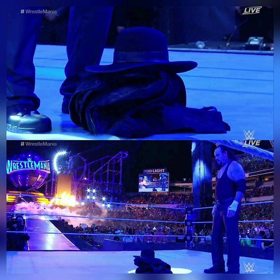 بعد نهاية المبارة يم يتردد أندر تيكر في الإعتزل حيث قام بخلع قبعته الشهيرة بالإضافة الي قفازاته والجاكيت الخاص به ليضعهم على حلبة الـ راسلمينيا .