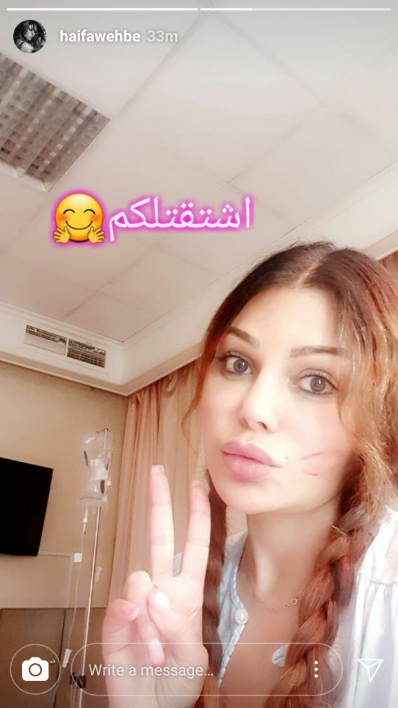 طمأنت الفنانة هيفاء وهبي الجمهور من داخل المستشفى وبدت هيفاء في صحة جيدة وبكامل جمالها ونضارتها من خلال الصورتين اللتين نشرتهما عبر حسابهما على “إنستا ستوري” وعلقت على إحداهما “إشتقتلكم” بينما كتبت على الثانية التي أظهرت أثار قبلة على خدها “والدتي .البوس البوس”.