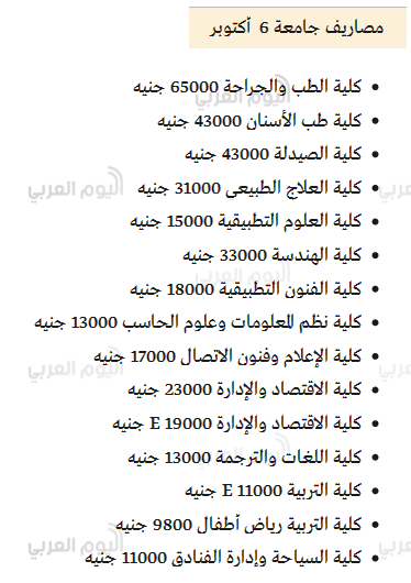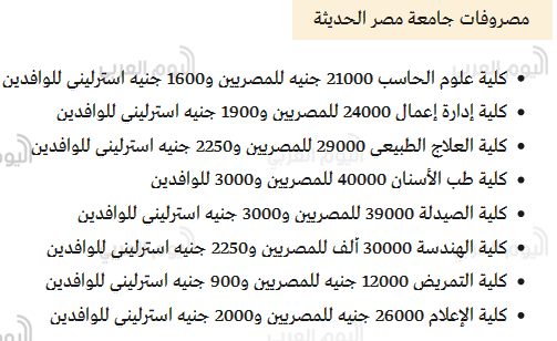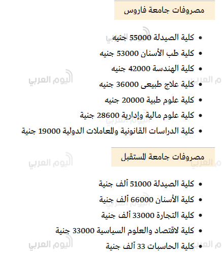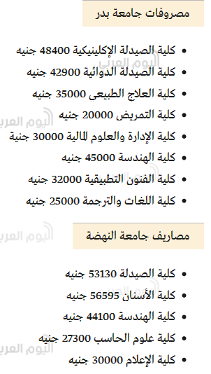 • مصاريف الجامعات الخاصة بمصر